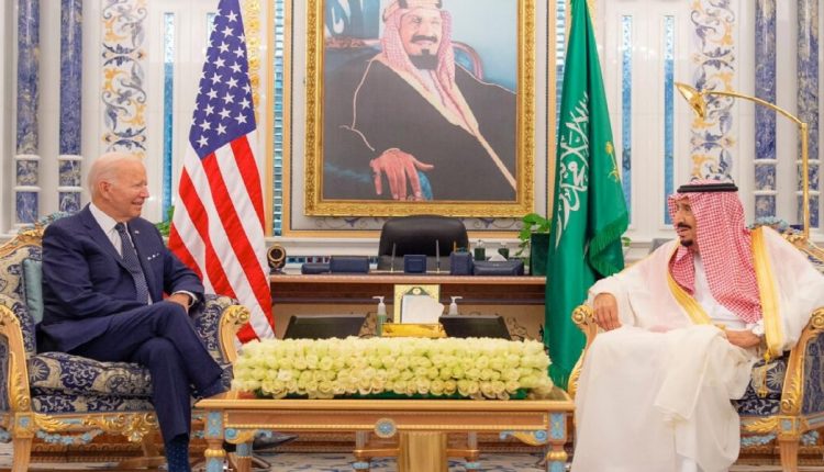 سعودی فرمانروا شاہ سلمان بن عبدالعزیز اور امریکی صدر جو بائیڈن کے مابین ملاقات گزشتہ روز جدہ کے قصر السلام میں ہوئی۔ ملاقات میں سعودی ولی عہد شہزادہ محمد بن سلمان بھی موجود تھے۔ اِس سے قبل شاہ سلمان نے امریکی صدر اور ان کے ہمراہ وفد کو سعودی عرب میں خوش آمدید کہا۔
