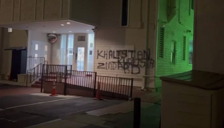 امریکہ میں بھارتی قونصل خانے کی دیوار پہ خالصتان زندہ باد کا نعرہ