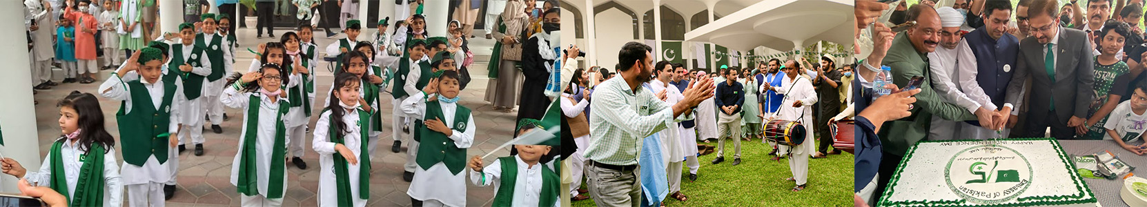 ابوظہبی(اردوویکلی)::دنیابھرکی طرح سفارت خانہ پاکستان ابوظہبی میں پاکستان کے 75ویں یوم آزادی کی مناسبت سے رنگارنگ اورپروقارتقریب کااہتمام کیاگیا جس میں سخت گرمی کے باوجود فیملیز سمیت پاکستانی کمیونٹی کی بڑی تعدادنے شرکت کی ۔ننھے منے بچوں کاجذبہ قابل دیدتھا تقریب کاآغاز اللہ تعالی کے بابرکت نام سے ہوا تلاوت کی سعادت حافظ جمشید آفریدی نے حاصل کی۔تقریب کی نظامت کے فرائض ہیڈ آف چانسلری محمدوسیم عباس نے انجام دیئے تقریب میں صدرپاکستان عارف علوی ،وزیراعظم پاکستان میاں محمدشہباز شریف اور وزیرخارجہ پاکستان بلاول بھٹوکے پیغامات بالترتیب محمدوسیم عباس ،لیبرویلفئیراتاشی سمیع اللہ خان نے پڑھ کر سنائے۔جس میں آج کے دن کی تاریخی اہمیت ،حصول پاکستان کے لیئے مسلسل جدوجہد،بانی پاکستان قائد اعظم محمدعلی جناح کے نظریات اور اصولوں پرعمل پیراہونا،آزادی کی خاطر ہمارے بزرگوں کی جانی قربانیوں اور استحکام پاکستان کاذکرکیاگیا تقریب سے قائم مقام سفیرسفارت خانہ پاکستان ابوظہبی امتیازفیروزگوندل نے کہا کہ آج مجھے پاکستانی کمیونٹی کی اتنی بڑی تعدادمیں شرکت دیکھ کر دلی خوشی محسوس ہورہی ہے بالخصوص بچوں اور نوجوانوں کاجوش وخروش قابل دید ہے متحدہ عرب امارات اور پوری دنیا میں مقیم تمام پاکستانیوں کو75ویں جشن آزادی کی خوشیاں مبارک ہوں امتیاز فیروز گوندل نے کہا کہ 14،اگست کادن ہماری تاریخ میں بڑی اہمیت کاحامل ہے کیونکہ آج ہم جن آزادفضاؤں میں سانس لے رہے ہیں اس کے پیچھے ہمارے بزرگوں کی طویل جدوجہداورانکی قیمتی جانوں کانذرانہ شامل ہے۔ ہمیں ان قربانیوں کوکبھی بھی فراموش نہیں کرناچاہیئے آج کادن ہمارے ان مقاصدکی تجدید کرتاہے جس کے حصول کے لیئے آزاد ملک حاصل کیاگیایہ دن ہمیں یاد دلاتاہے کہ ہمیں پاکستان کودرپیش مسائل پرقابوپانے کے لیئے بانی پاکستان قائد اعظم محمدعلی جناح کے نظریات اور اصولوں پرعمل پیراہوناہوگا تاکہ ہماراملک بین الاقوامی برادی کی صفوں میں نمایاں مقام پرکھڑاہوسکے ۔امتیاز فیروز گوندل نے کہا آج تجدیدعہدکادن ہے آیئے سب ملکر عہدکریں کہ ہم پاکستان کی تعمیروترقی اور خوشحالی کے لیئے تمام ترسیاسی وابستگیوں سے بالاترہوکرصرف اورصرف مستحکم پاکستان کے لیئے کام کریں گے انشااللہ(پاکستان زندہ باد)شیخ خلیفہ بن زاید عرب پاکستان اسکول کے بچوں نے خوبصورت ملی نغمی پیش کئیے۔پرچم کشائی کی رسم کے بعد ڈھول کی تھاپ پر روائتی خٹک ڈانس پیش کیا گیا بعدازاں یوم آزادی کی مناسبت سے کیک کاٹاگیا۔