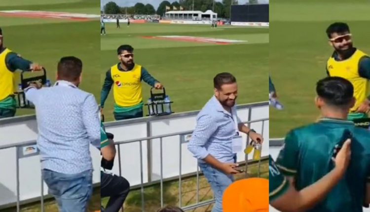 پاکستانی مداح نے کریٹ سے دوپانی کی بوتلیں اٹھائی تو شاداب خان کی جانب سے ایک مزاحیہ ردعمل بھی سامنے آیا۔