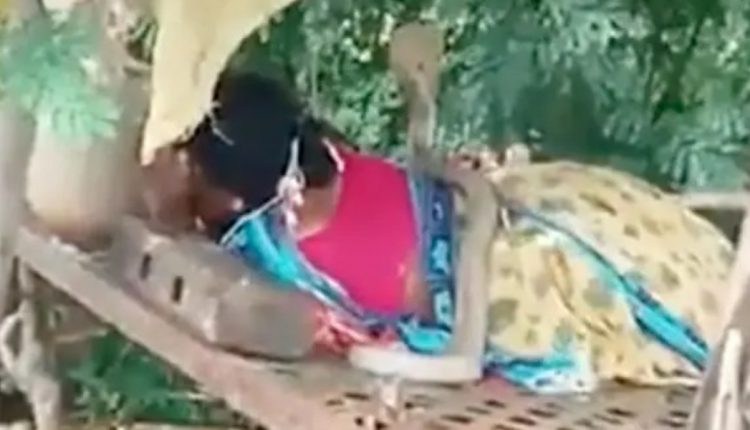 بھارت میں ایک انوکھا واقعہ سامنے آٰیا جب کھیت میں آرام کرتی خاتون پر اچانک سانپ چڑھ گیا جس کو دیکھ خاتون نے سمجھداری سے کام لیا اور اپنی جان بچالی۔