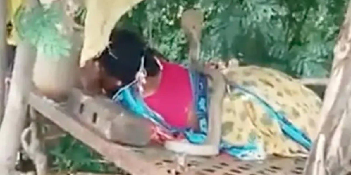لیکن بھارتی خاتون نے سانب سے بچنے کے لیے ہوشیاری سے کام لیا اور بغیر ہلے لیٹنے کو ترجیح دی، انہوں نے کوئی ردعمل نہیں دکھایا جو ان کی جان بچنے کی بھی وجہ بنا۔