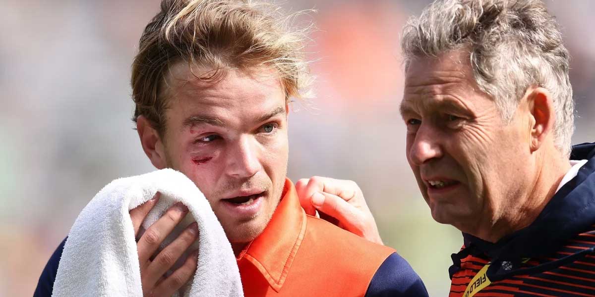 پرتھ کرکٹ گراؤنڈ میں کھیلے جارہے میچ میں قومی ٹیم کے فاسٹ بولر حارث رؤف کا تیز رفتار باؤنسر بیس ڈی لیڈ کی آنکھ میں لگ گیا جس سے وہ شدید زخمی ہوکر میچ سے باہر ہوگئے۔
