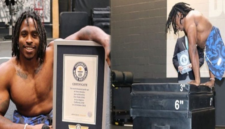 ٹانگوں کے بغیر پیدا ہونے والے امریکی ایتھلیٹ نے ہاتھوں کی مدد سے لمبی باکس جمپ لگا کر اور تین منٹوں میں سب سے زیادہ ڈائمنڈ پش اپس لگا کر گینیز عالمی ریکارڈ اپنے نام کرلیے۔