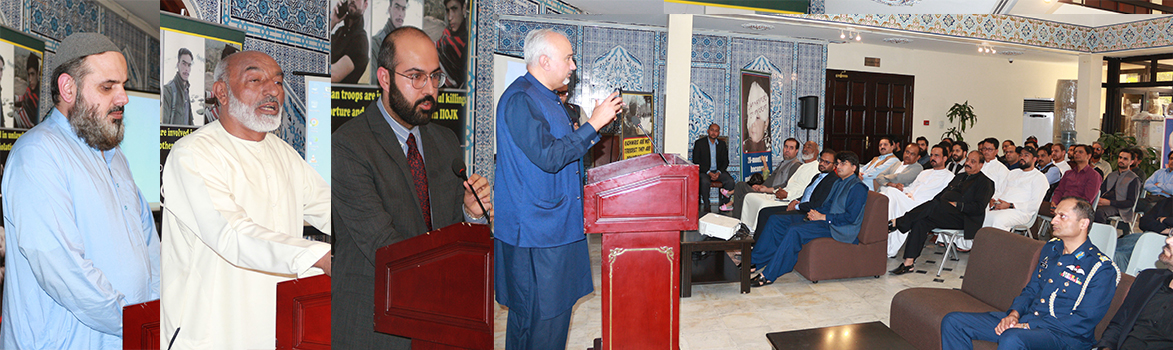 کشمیر میں بھارتی قابض افواج کی طرف سے کیا جا رہا ہے۔ تصویری نمائش کا بھی اہتمام کیا گیا۔تقریب کے اختتام پرشہداء اور اقوام متحدہ کی قراردادوں کے مطابق ور کشمیری عوام کی خواہشات کے مطابق تنازعہ کشمیر کے جلد حل کے لیےخصوصی دعا کی گئی۔