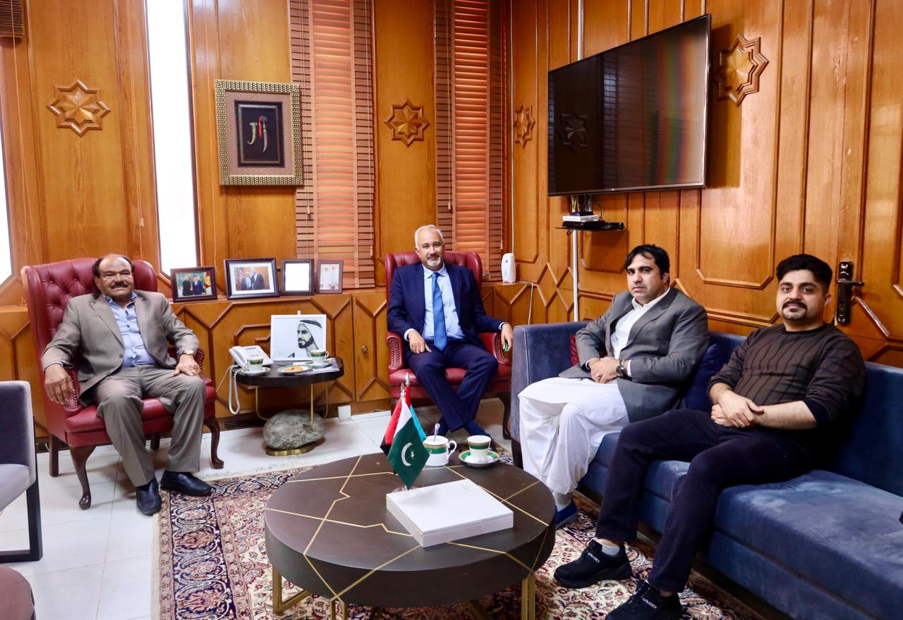 ابوظہبی(اردوویکلی):: گزشتہ روزمتحدہ عرب امارات میں سفیربرائے اسلامی جمہوریہ پاکستان فیصل نیازترمذی نے پاکستان اسلام آباد سے آئے ہوئے ممتازعمائدین ملک ضیاالرحمن اورڈاکٹرشیرمان سے ملاقات کی ۔اس موقع پرممتازپاستانی بزنس مین چئیرمین الصدیق ٹریڈنگ چوہدری محمدصدیق بھی موجودتھے۔سفیرپاکستان نے مہمانوں سے ملاقات میں اظہارخیال کرتے ہوئے کہا کہ یواے ای اورپاکستان میں تجارت کے کثیرمواقع ہیں جس سے پاکستانی تاجربرادری اور پروفیشنل بھرپورفائدہ اٹھاسکتے ہیں یواے ای ایک بہت بڑاتجارتی ہب ہےپاکستانی بزنس مین یہاں بیٹھ کراپنے کاروبارکودیگرممالک تک وسعت دے سکتے ہیں جس سے دونوں ممالک کوفائدہ پہنچ سکتاہے ۔سفارت خانہ پاکستان انکی ہرطرح رہنمائی کریگا۔کوویڈوباکے بعد اب تیزی کے ساتھ کاروباری حالات بہترہورہے ہیں جس سے ہماری تاجربرادری کوفائدہ اٹھاناچاہیے ۔