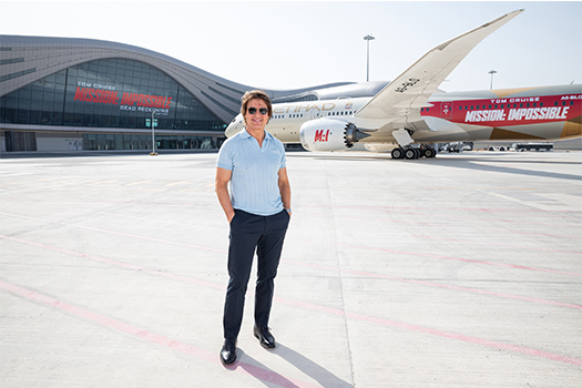 متحدہ عرب امارات کی سرکاری نیوزایجنسی (وام) کے مطابق مشن امپاسبل فرنچائز کی انتہائی متوقع ساتویں قسط کامرکزی کردار ابوظہبی بین الاقوامی ہوائی اڈے کے نئے مڈفیلڈ ٹرمینل میں پہلی پرواز پر پہنچا۔ فلم کے مشن میں ٹام کروز نے اتحاد ایئرویز کے بوئنگ 787 ڈریم لائنر پر مشن امپاسبل کےلیوری کی نقاب کشائی کی۔فلم کی آفیشل ایئر لائن کے طور پر اتحاد اب اس ہوائی جہاز پر فلم کی برانڈنگ لے کر جائے گا کیونکہ یہ دنیا بھر کی منزلوں پر پرواز کرتا ہے۔ فلم میں اس کے کردار کو پہچاننے کے لیے مڈفیلڈ ٹرمینل کے مشہور ڈھانچے کو بھی اسی طرح کے تھیم سے سجایا گیا تھا جس میں فلم کا سب سےسنسنی خیز اور تکنیکی طور پر پیچیدہ ایکشن سین عمارت کی 315 میٹر چھت پر شوٹ کیا گیا۔