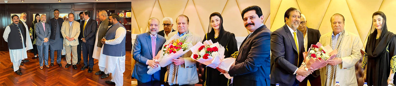 وفدکے سربراہ پاکستان مسلم لیگ ن گلف ریجن کے صدر و ممبر قومی اسمبلی چوہدری احسان الحق باجوہ نے خطبہ استقبالیہ پیش کرتے ہوئے متحدہ عرب امارات میں آمد پرمیاں نواز شریف کو خوش آمدید کہا اور کہا کہ قائد محترم میاں محمد نواز شریف پاکستان کی ترقی میں لازم و ملزوم ہیں اگر ملک کو بچانا ہے تومیاں محمد نواز شریف  کواقتدارمیں واپس لاناہوگاچئیرمین محمد غوث قادری نے میاں نواز شریف کو خوش کہا اور قائد محترم کے سنہری دور کو واپس لانے کی خواہش کا اظہار کیا۔صدر مصطفٰی مغل نے خوش آمدید کہا جنرل سیکریٹری راجہ ابوبکر آفندی نے میاں نواز شریف  کو خوش آمدید کہا اور کہا کہ اگر نوازشریف کے تینوں ادوار کی ترقی کا دورانیہ نکال دیں تو پیچھے صفر بچتا ہے۔سابق ایم پی اے آزاد علی تبسم نے پارٹی قائد کو خوش آمدید کہا پاکستان اور نواز شریف لازم ملزوم ہیں۔میٹنگ میں پاکستان مسلم لیگ ن گلف کے جنرل سیکریٹری افتخار بٹ ،سینئیرنائب صدریواے ای خواجہ عبدالوحید پال، سینئر نائب صدر چوہدری عبدالغفار،جنرل سیکریٹری راجہ ابوبکرآفندی،آزادعلی تبسم،چئیرمین محمدغوث قادری، صدر مصطفے مغل ،نائب صدر چوہدری فیصل الطاف اور نائب صدر راجہ خالد محمود بھی موجود تھے۔پاکستان مسلم لیگ (ن)یواے ای کے سینئیرعہدیداران کی جانب سے قائدپاکستان مسلم لیگ میاں محمدنوازشریف کوپھول پیش کئیے گئے۔
