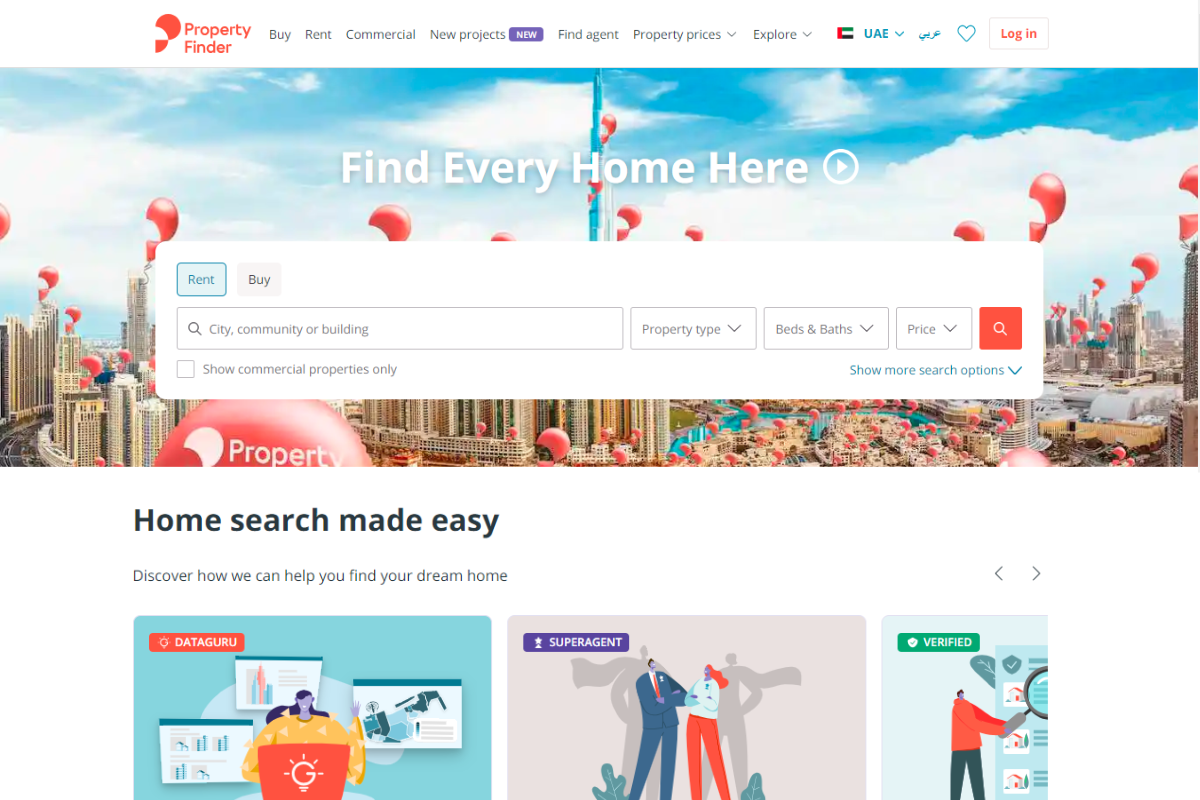 پراپرٹی فائنڈر دبئی میں جائیداد کا ایک نمایاں بازار ہے جو اس علاقے میں خریداروں، بیچنے والوں اور کرایہ داروں کو جوڑتا ہے۔ پراپرٹی فائنڈر متحدہ عرب امارات اور مشرق وسطیٰ کے دیگر ممالک میں سب سے بڑے آن لائن پراپرٹی پورٹل میں تبدیل ہو چکا ہے۔ ان کا اہم پلیٹ فارم لوگوں اور کاروباروں کے لیے پراپرٹی کی مکمل فہرستیں، تجزیاتی مارکیٹ ڈیٹا، اور جدید ترین سرچ ٹولز پیش کر کے صحیح پراپرٹی تلاش کرنا آسان بناتا ہے۔ پراپرٹی فائنڈر کلائنٹس کے وسیع اسپیکٹرم کے مطالبات کو پورا کرنے کے لیے پراپرٹی کی مکمل فہرستیں پیش کرتا ہے، بشمول کونڈو، ولاز، دفاتر، تجارتی عمارتیں، اور خوردہ ادارے۔