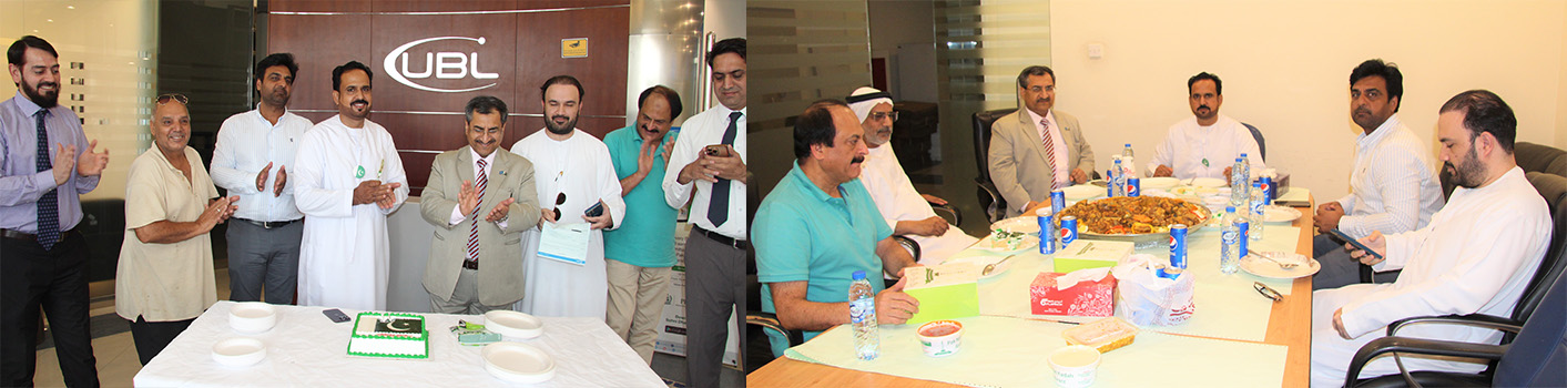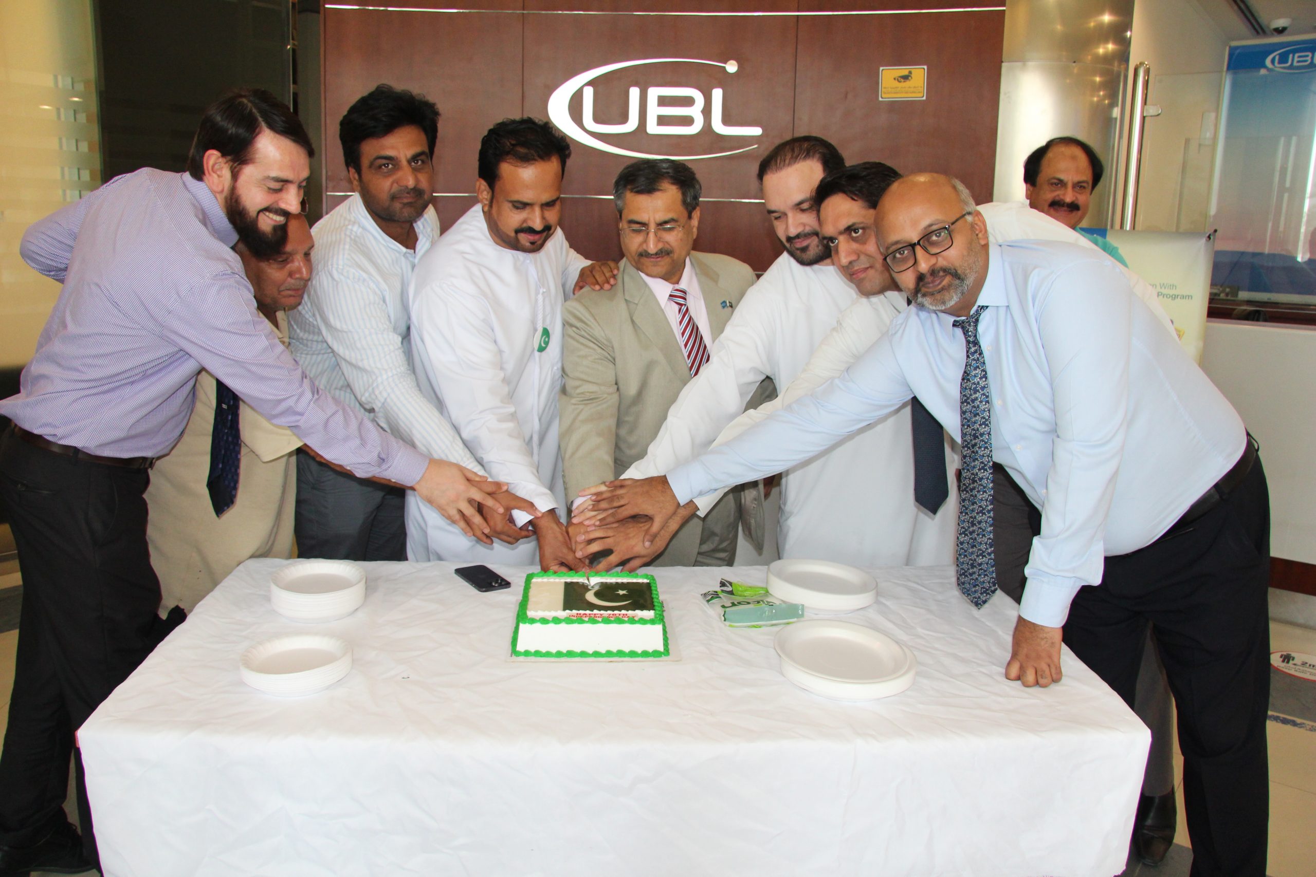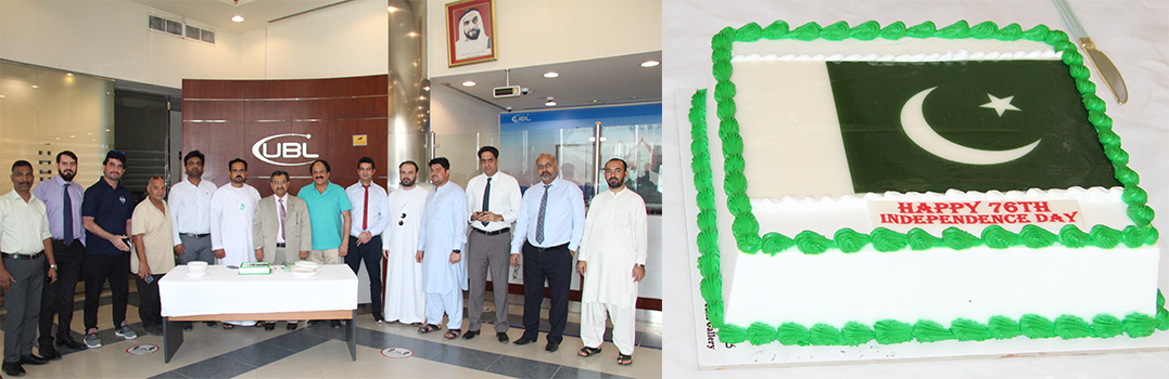 یوبی ایل مصفح برانچ میں پاکستان کے 76ویں یوم آزادی پرکیک کاٹنے کی تقریب۔