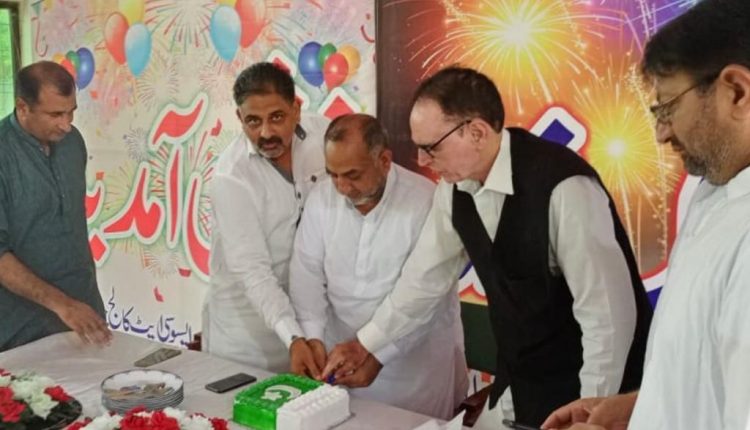 گجرات(نیوزڈیسک)::14اگست آزادی پاکستان کاتاریخ سازدن ۔اس دن کی مناسبت سے گورنمنٹ عبدالحق ڈگری کالج جلالپور جٹاں میں یوم آزادی کی پروقارتقریب منعقد کی گئی ۔ سابق ممبرصوبائی اسمبلی پنجاب چوہدری عبداللہ یوسف نے پرنسپل کالج کے ہمراہ پرچم کشائی کی اور تقریب کے اختتام پریوم آزادی کاکیک کاٹا۔اس موقع پر مہمان خصوصی چوہدری عبداللہ یوسف نے خطاب کرتے ہوئے کہا کہ پاکستان ہمارے آباؤاجداد کی لاکھوں قربانیوں کے بعد وجودمیں آیا۔لہذا ہمیں اپنے بزرگوں کی دی گئی قربانیوں کی قدرکرنی چاہیئے اور ملک کی ترقی کے لیئے دن رات کام کرنا چاہیئے ۔اللہ پاک ہمارے پیارے وطن کوحاسدوں اوردشمنوں کی نظربدسے محفوظ فرمائے آمین ثم آمین
