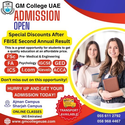جی ایم کالج یواے ای میں کے جی سے لیکر 12ویں تک۔