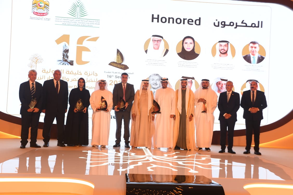 عزت مآب شیخ نہیان مبارک النہیان نے سولہویں سیشن 2024 میں کھجور اور زرعی اختراع کے لیے خلیفہ انٹرنیشنل ایوارڈ کے فاتحین کو ایوارڈز سے نوازا جس میں درج ذیل کیٹیگریز میں "ممتاز اختراعی مطالعات اور جدید ٹیکنالوجی” زمرہ، یکساں طور پر ڈاکٹر خالد بن ال نے جیتا۔ -ہادی المسمودی، متحدہ عرب امارات یونیورسٹی سے، اور ڈاکٹر عزالدین جد اللہ حسین احمد، وزارت زراعت اور اراضی بحالی، عرب جمہوریہ مصر کی، اور "بنیادی ترقی اور پیداواری منصوبوں” کے لیے زمرہ، یکساں طور پر ڈاکٹر لم ایرن نے جیتا، ہائر کالجز آف ٹیکنالوجی، ابوظہبی، اور افریقہ آرگینکس کمپنی، مراکش کی بادشاہی سے، جیسا کہ "زرعی شعبے کی خدمت کرنے والی جدید اور جدید اختراعات” کے زمرے میں، یکساں طور پر جیتا۔ ڈاکٹر یاروب قحطان عبدالرحمن الدوری، شارجہ یونیورسٹی، متحدہ عرب امارات سے، اور ویلوریزن کمپنی، ریسرچ اینڈ انوویشن سینٹر، عرب جمہوریہ مصر سے، جبکہ کھجور کے میدان میں بااثر شخصیت اور