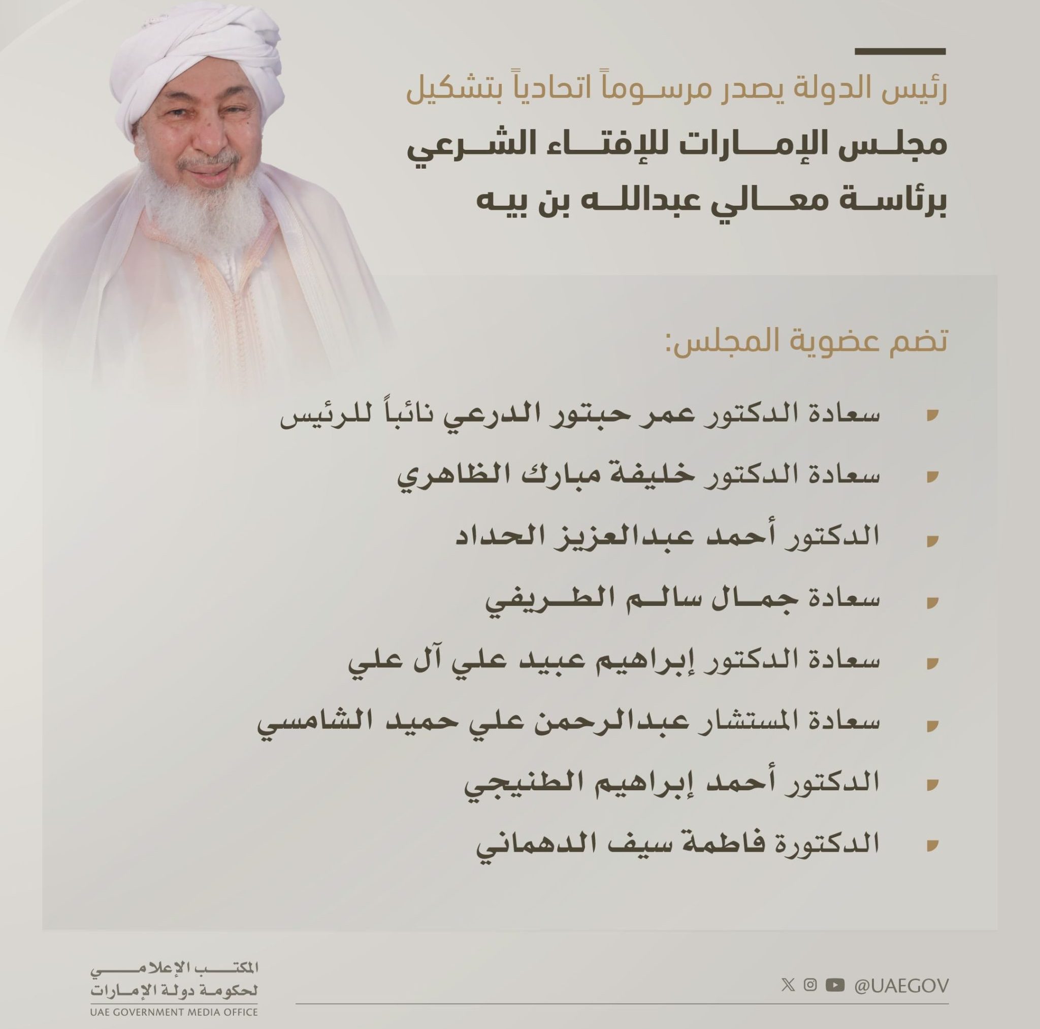 متحدہ عرب امارات کے صدر کا متحدہ عرب امارات کونسل برائے فتویٰ تشکیل دینے کا وفاقی فرمان جاری ۔