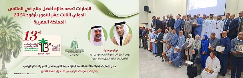 متحدہ عرب امارات نے مراکش میں انٹرنیشنل کھجور فورم 2024 میں بہترین پویلین کا ایوارڈ جیت لیا۔