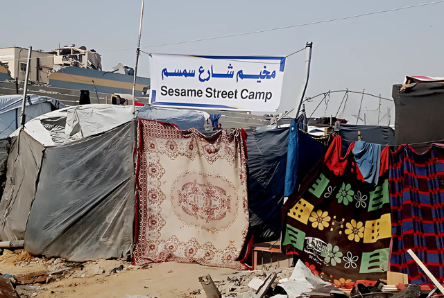 مئی 2024 میں اسرائیلی زمینی حملے کے بعد شمالی غزہ میں شباب جبلیہ کلب کی سابقہ ​​پانچ طرفہ فٹ بال پچ پر اب "تل اسٹریٹ کیمپ” کے نام سے جانا جاتا ایک عارضی نقل مکانی کرنے والی سائٹ ہے۔