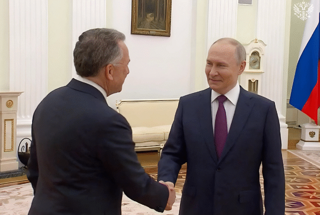 کریملن کے ذریعہ جاری کردہ فوٹیج میں دونوں کا تبادلہ مبارکباد اور سفید انڈاکار کی میز پر ایک دوسرے سے بیٹھے ہوئے دکھائے گئے۔