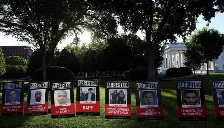 وائٹ ہاؤس کے لان پر پوسٹ کی گئی تصاویر میں 100 افراد شامل ہیں جن پر الزام عائد کیا گیا تھا یا سنگین جرائم کے الزام میں ان کا الزام عائد کیا گیا ہے ، جس میں قتل ، عصمت دری اور فینٹینیل تقسیم شامل ہیں۔