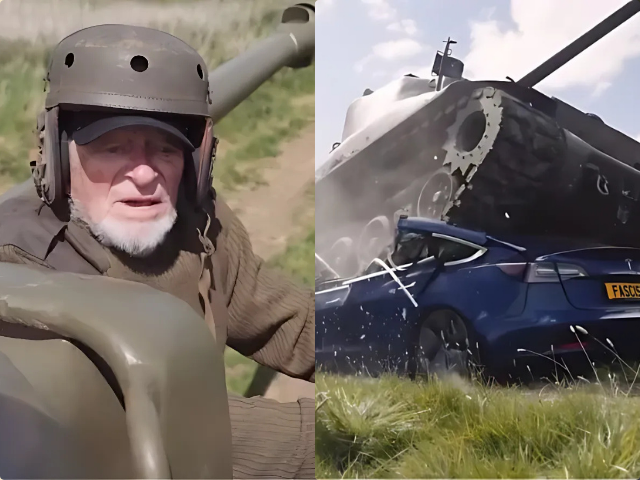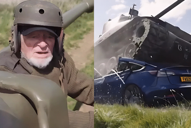 یورپ میں ایلون مسک کے بڑھتے ہوئے سیاسی نقشوں کا مقصد ایک ڈرامائی اسٹنٹ میں ، 98 سالہ دوسری جنگ عظیم II کے ایک تجربہ کار نے ٹیسلا ماڈل 3 کے اوپر شرمین ٹینک چلایا ، اور اس نے گاڑی کو دائیں بازو کی جماعتوں کی توثیق کے لئے احتجاج کرنے کے لئے چپٹا کیا۔
