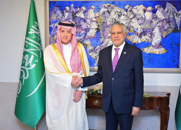 پاکستان کے دفتر خارجہ کے ایک بیان کے مطابق ، سعودی عرب کے وزیر مملکت برائے خارجہ امور خارجہ ، عادل الجوبیر نے پاکستان کے نائب وزیر اعظم اور وزیر خارجہ اسحاق ڈار کے ساتھ کال کے دوران جنگ بندی کی حمایت کا اظہار کیا۔