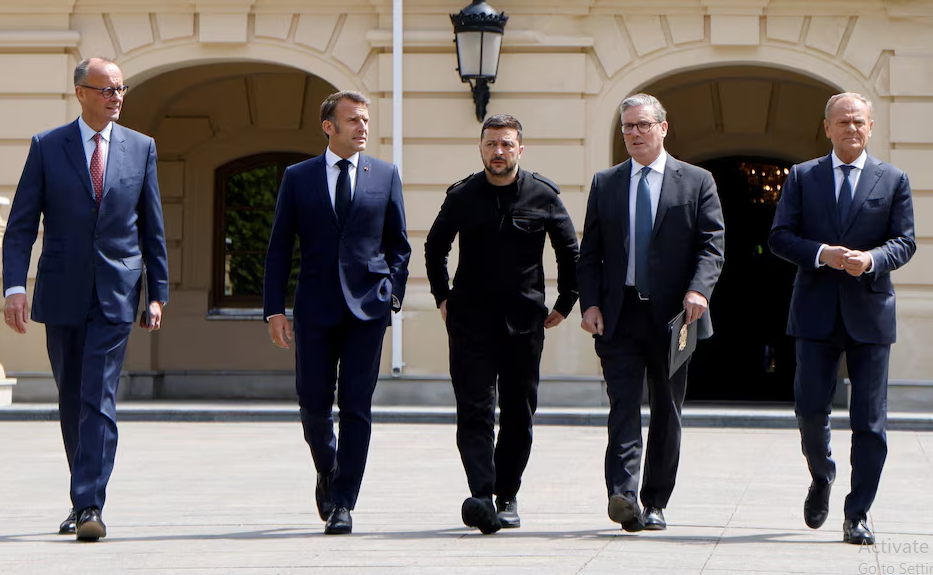 یورپی باشندے ٹرمپ انتظامیہ کو پابندیاں عائد کرنے میں ان کے ساتھ شامل ہونے پر راضی کرنے کے لئے سخت کوشش کر رہے ہیں۔ برطانیہ ، فرانس ، جرمنی اور پولینڈ کے رہنماؤں نے رواں ماہ کے شروع میں مشترکہ طور پر کییف کا سفر کیا تھا اور انہیں زیلنسکی کے ساتھ اسپیکر فون پر ٹرمپ سے گفتگو کرتے ہوئے فلمایا گیا تھا۔