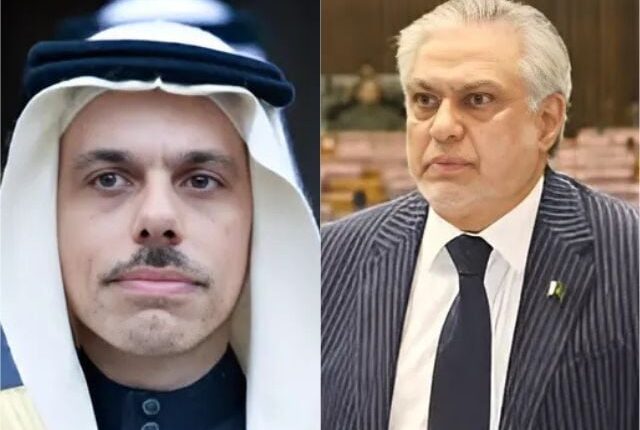 پاکستان کے نائب وزیر اعظم اور وزیر خارجہ ، اسحاق ڈار ، نے سعودی عرب کے وزیر خارجہ شہزادہ فیصل بن فرحان کے ساتھ اسلام آباد میں بات چیت کی ، اور دونوں ممالک کے مابین دیرینہ تعلقات کی توثیق کی۔