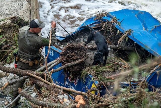 رائٹرز کے ایک فوٹوگرافر نے لگ بھگ 10 کاریں دیکھی – کچھ توڑ پھوڑ والی ونڈشیلڈز اور دروازوں کے ساتھ – جو سیلاب کے پانیوں سے بہہ گئے تھے اور دریا کے قریب چھوڑ دیا گیا تھا۔