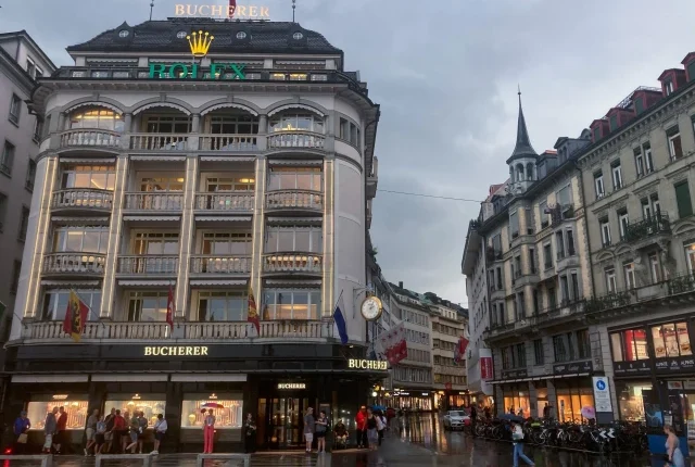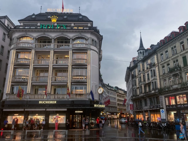 لوسرن کے گرینڈیلسٹراس کے خریداروں پر ہزاروں گھڑیاں چمکدار ہیں ، جو رولیکس سے پیٹیک فلپ تک اسٹورز کی حامل ہیں۔ ان دکانوں میں گھڑیاں عام طور پر کئی سو فرانک سے 500،000 سے زیادہ فرانک تک لاگت آتی ہیں۔