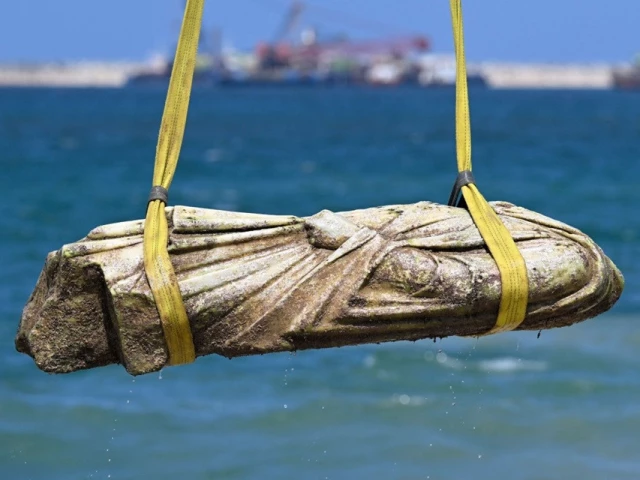 جمعرات کے روز ، کرینوں نے آہستہ آہستہ گہرائیوں سے مجسموں کو لہرایا ، جبکہ ویٹس سوٹ میں غوطہ خور ، جنہوں نے انہیں بازیافت کرنے میں مدد کی تھی ، ساحل سے خوشی ہوئی۔