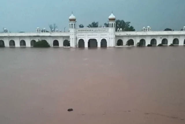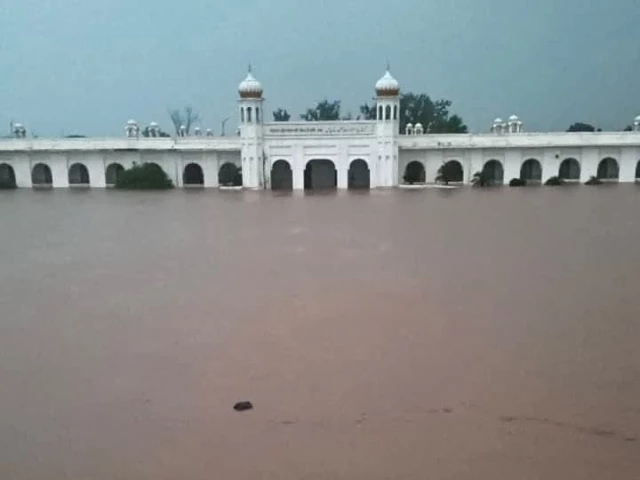 دریائے راوی سے سیلاب کے پانی بدھ کے روز کرتار پور میں گردوارہ دربار صاحب میں داخل ہوئے ، اس نے اپنے صحن کو ڈوبا اور سکھ مذہب کے ایک پُرجوش مقامات پر زیارت کو روک دیا۔