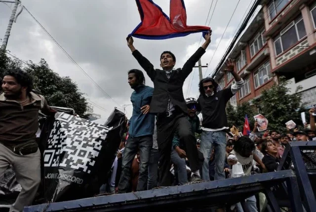 8 ستمبر کو بدعنوانی کے خلاف احتجاج اور حکومت کے متعدد سوشل میڈیا پلیٹ فارمز کو روکنے کے حکومت کے فیصلے کے دوران مظاہرین پارلیمنٹ کے قریب جمع ہوتے ہیں۔