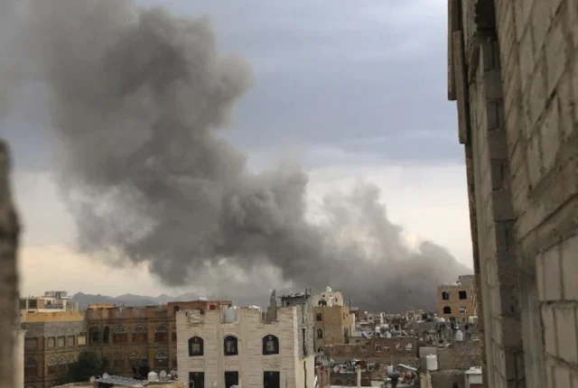 سانا کے اوپر بھوری رنگ کے دھوئیں کا ایک بڑا پلیم بلند ہوا جب اس ہڑتالوں نے شہر بھر میں گونج اٹھا ، جسے ایک دہائی سے زیادہ عرصے سے ہتھاس نے کنٹرول کیا ہے۔