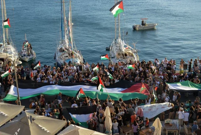 گلوبل سمود فلوٹیلا اسرائیل کی بحری ناکہ بندی کو غزہ کی ناکہ بندی کرنے کی کوشش کرنے اور توڑنے کے لئے تقریبا 50 50 سویلین کشتیاں استعمال کررہی ہے۔ بہت سے وکلاء اور کارکن ، بشمول سویڈش آب و ہوا کی مہم چلانے والی گریٹا تھن برگ میں شامل ہیں۔