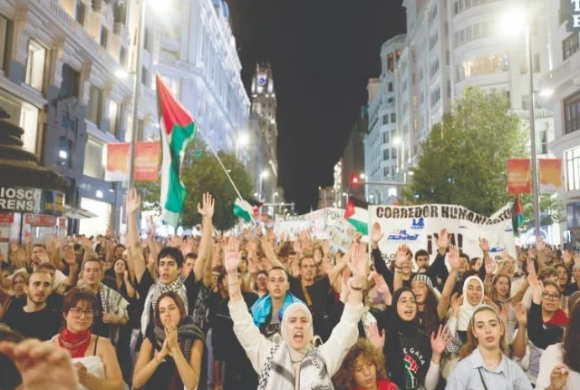 بارسلونا میں ، ایک 65 سالہ پنشنر ، مارٹا کیرانزا ، جس نے اس کی پیٹھ پر فلسطینی پرچم کے ساتھ مظاہرہ کیا ، نے کہا کہ اسرائیل کی پالیسی "کئی سالوں سے غلط ہے اور ہمیں سڑکوں پر جانا پڑے گا”۔