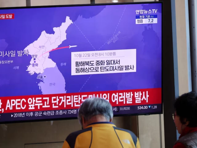 لوگ ایک ٹی وی دیکھتے ہیں جس میں شمالی کوریا کے بارے میں ایک خبر نشر کی جارہی ہے جس میں جنوبی کوریا کے سیئول کے ایک ریلوے اسٹیشن پر ، اس کے مشرقی ساحل سے دور سمندر کی طرف ایک مختصر فاصلے پر بیلسٹک میزائل فائر کیا گیا ہے ، 22 اکتوبر ، 2025 تصویر: رائٹرز