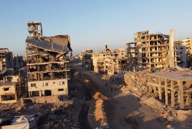 ڈرون کا نظارہ رہائشی محلے میں تباہی کو ظاہر کرتا ہے ، اسرائیلی افواج کو علاقے سے انخلا کے بعد ، غزہ شہر میں ، غزہ میں اسرائیل اور حماس کے مابین جنگ بندی کے درمیان: رائٹرز