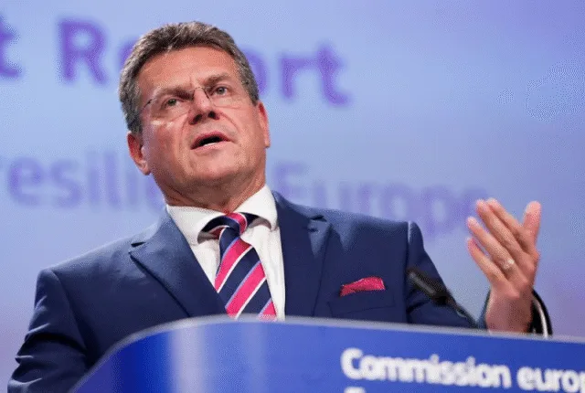 یوروپی یونین کے کمیشن کے نائب صدر ماروس سیفکوچ نے 2020 کے اسٹریٹجک دور اندیشی کی رپورٹ پر ایک نیوز کانفرنس پیش کی جس کے نام سے برسلز ، بیلجیئم میں 9 ستمبر 2020 میں برسلز میں "ایک زیادہ لچکدار یورپ کی طرف کورس کرنا” کے نام سے ایک نیوز کانفرنس ہے۔ تصویر: رائٹرز