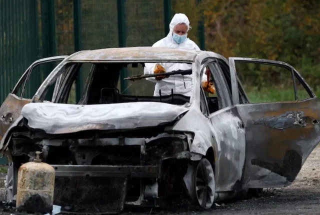 ایک فرانسیسی جینڈرم نے ایک ڈرائیور کے ذریعہ استعمال ہونے والی جلی ہوئی کار کا معائنہ کیا جو فرانس کے ساحل پر واقع سیاحتی فرانسیسی جزیرے آئل ڈولرون پر سینٹ پیئر ڈیولرون کے قریب پیدل چلنے والوں اور سائیکل سواروں میں داخل ہوا ، جو 5 نومبر ، 2025 کو اٹلانٹک کوسٹ سے دور ہے۔ فوٹو: رائٹرز: رائٹرز: رائٹرز