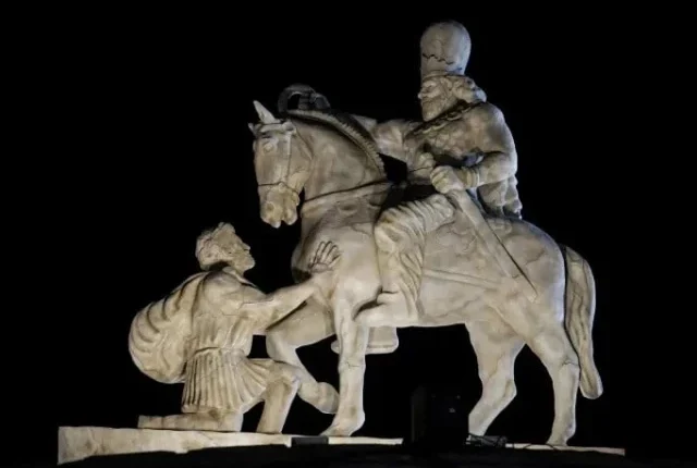 جمعہ کے روز ہجوم نے غیر ملکی دشمنوں کے خلاف ایک قدیم فارسی کی فتح کا جشن منانے والے مجسمے کی نقاب کشائی کے لئے وسطی تہران کو بھرا دیا تھا-اسرائیل کے ساتھ اپنی حالیہ 12 روزہ جنگ کے تناظر میں ایران کے جدید دور کے دشمنوں کی طرف بدنام ہونے کا مظاہرہ۔