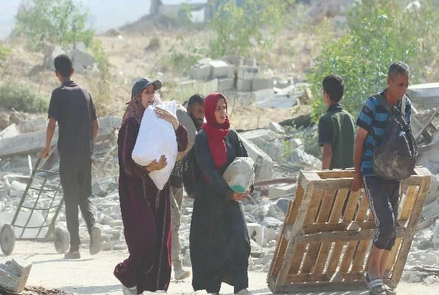 فلسطینیوں نے غزہ کی پٹی میں انسانی امداد حاصل کی۔ تصویر: اے ایف پی