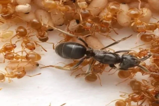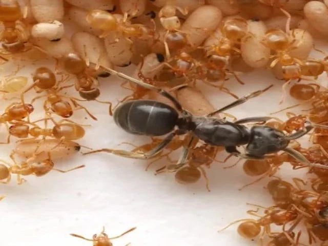 ڈاسن نے کہا کہ بالغ کارکنوں کی چیونٹیوں کے بعد اس کے آس پاس جمع ہوجاتے ہیں ، کوکون کو ہٹا دیتے ہیں ، "پیوپی میں سوراخ کاٹ کر زہر ڈالتے ہیں۔”