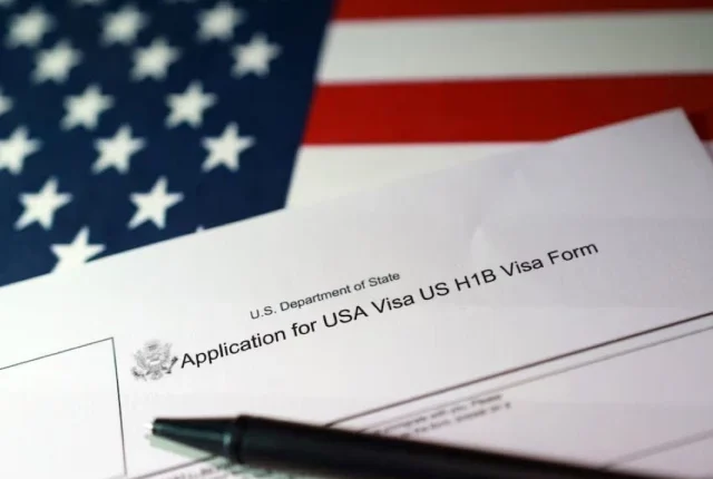 22 ستمبر ، 2025 کو لی گئی اس مثال میں امریکی پرچم اور یو ایس ایچ -1 بی ویزا درخواست فارم دیکھا گیا ہے۔ تصویر: رائٹرز