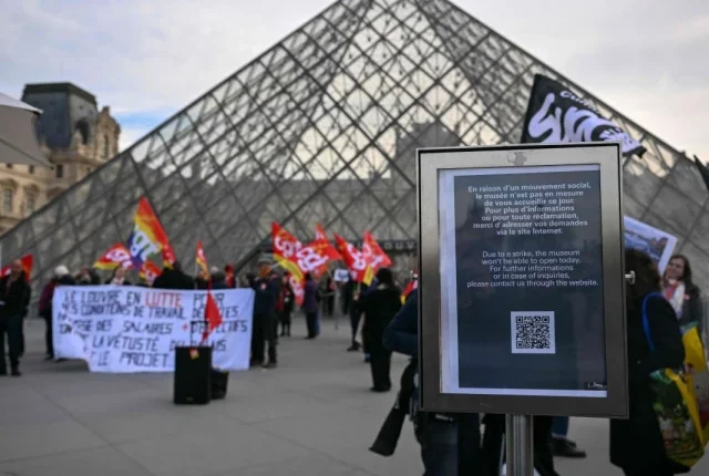 پیرس کے سنگ میل پر کام کرنے کے حالات پر ہڑتال کے سبب پیر کے روز لوور نے پیر کے روز ہزاروں مایوس زائرین کے لئے اپنے دروازے بند کردیئے ، ایک بڑی ڈکیتی کے دو ماہ بعد۔