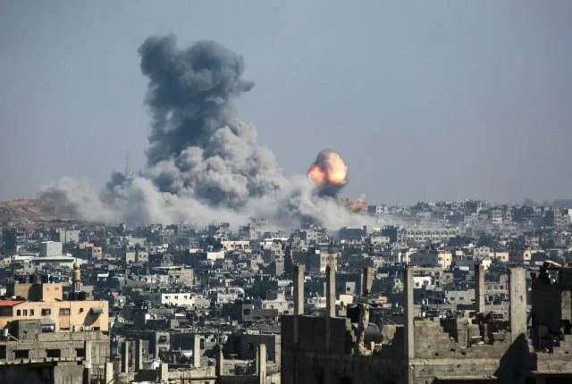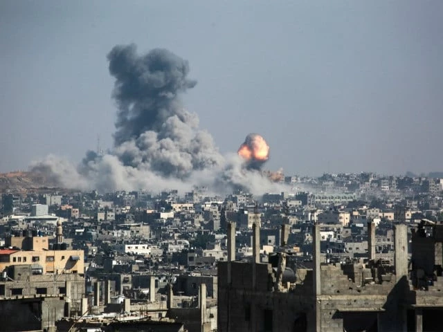 18 جون ، 2025 کو مشرقی غزہ شہر میں واقع توفاہ پڑوس کے مشرق میں اسرائیلی بمباری کے بعد آگ اور دھواں کا ایک کالم پھوٹ پڑا۔ تصویر: اے ایف پی