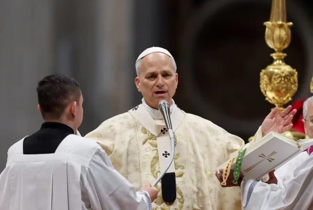 پوپ لیو XIV 25 دسمبر ، 2025 کو ویٹیکن میں سینٹ پیٹرس باسیلیکا میں کرسمس ہولی ماس منا رہے ہیں۔ تصویر: رائٹرز