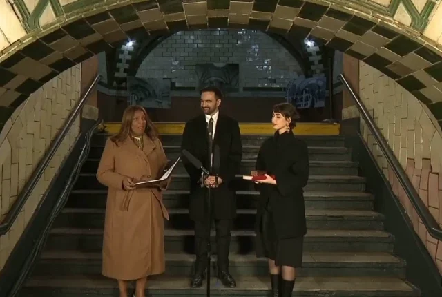 34 سالہ عمر کے ڈیموکریٹ نے آدھی رات کے فورا. بعد ہی ڈس استعمال شدہ پرانے سٹی ہال سب وے اسٹیشن پر حلف لیا ، جو ریاستہائے متحدہ کے سب سے بڑے شہر کی قیادت کرنے والا پہلا مسلمان بن گیا۔