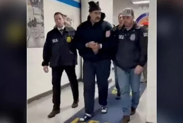 3 جنوری ، 2026 کو نیو یارک سٹی ، نیو یارک شہر میں امریکی ڈرگ انفورسمنٹ ایڈمنسٹریشن (ڈی ای اے) کے دفاتر میں وینزویلا کے صدر نکولس مادورو کو ایک دالان کے نیچے تحویل میں لے جانے والی ایک اب بھی تصویر میں دکھایا گیا ہے۔ تصویر: رائٹرز: رائٹرز: رائٹرز