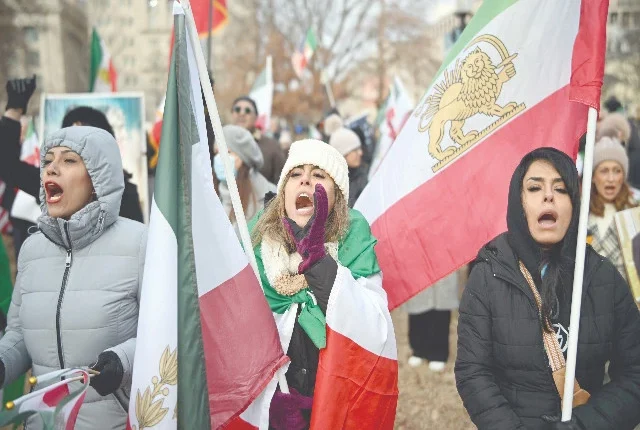 کارکن واشنگٹن کے وائٹ ہاؤس سے لافائٹی اسکوائر میں ایران میں مظاہرین کی حمایت کرنے والے ایک ریلی میں حصہ لیتے ہیں۔ تصویر: اے ایف پی