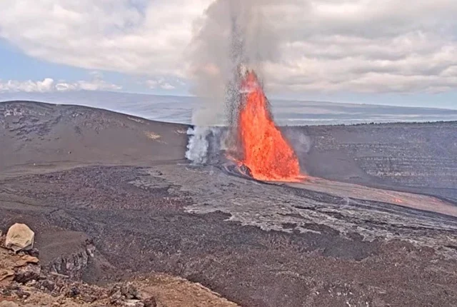 امریکی جیولوجیکل سروے کے آتش فشاں کے ماہرین نے بتایا کہ تاپدیپت لاوا کو ہوا میں 1،500 فٹ (460 میٹر) سے زیادہ پھینک دیا جارہا ہے ، جس میں دھواں اور گیسوں کے پلمز 20،000 فٹ (چھ کلومیٹر) تک بڑھ رہے ہیں۔