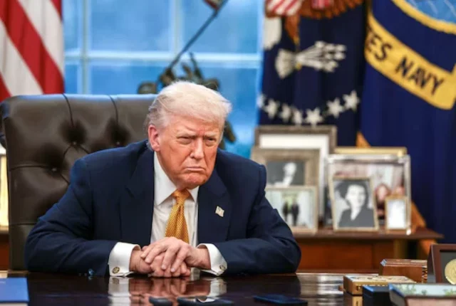 واشنگٹن میں وائٹ ہاؤس میں اوول آفس میں ایک خصوصی انٹرویو کے دوران صدر ڈونلڈ ٹرمپ کا رائٹرز وائٹ ہاؤس کے نمائندے اسٹیو ہالینڈ (تصویر میں نہیں) کے ذریعہ انٹرویو لیا گیا ہے۔ ماخذ: رائٹرز